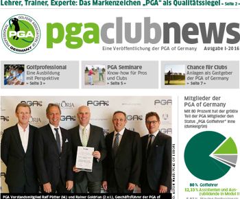 Jedes Unternehmen, das erfolgreich sein möchte, benötigt effektive wirtschaftliche Motoren. Antreibende Kräfte, die über die Kompetenz und das Know-how verfügen, das angebotene Produkt in der besten Weise zu präsentieren und Kunden dafür zu begeistern. Jede Golfanlage verfügt neben dem Management über einen solchen Motor: Den PGA Golfprofessional. Mit der PGA Club News, die an alle deutschen Golfanlagen sowie an alle Mitglieder der PGA of Germany geht, möchte die PGA of Germany Manager und Verantwortliche von Golfanlagen über den Berufsverband des Professional Golf in Deutschland und seine Aktivitäten informieren. Damit die Zusammenarbeit zwischen Management und Professionals in den Clubs noch effektiver werden kann.