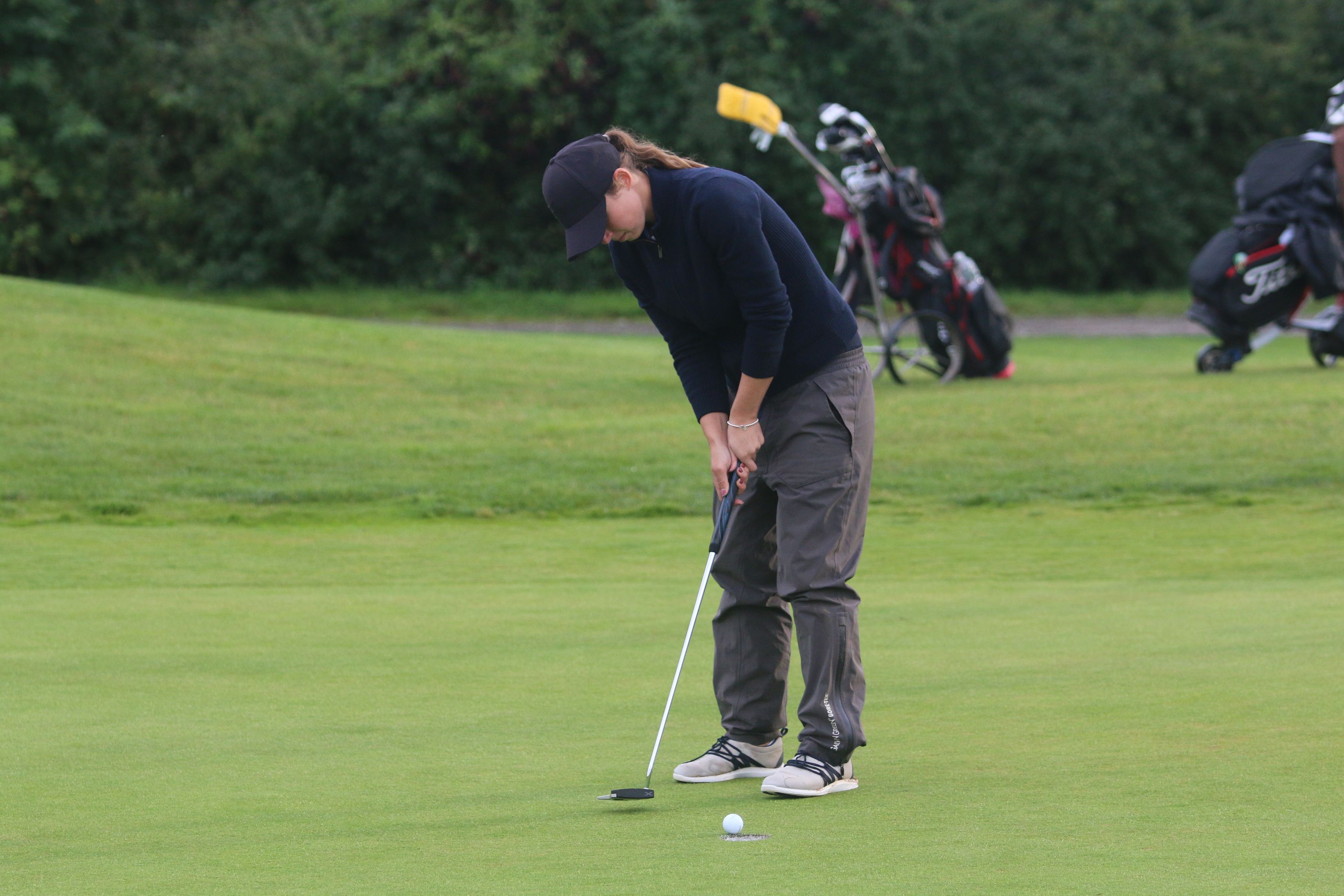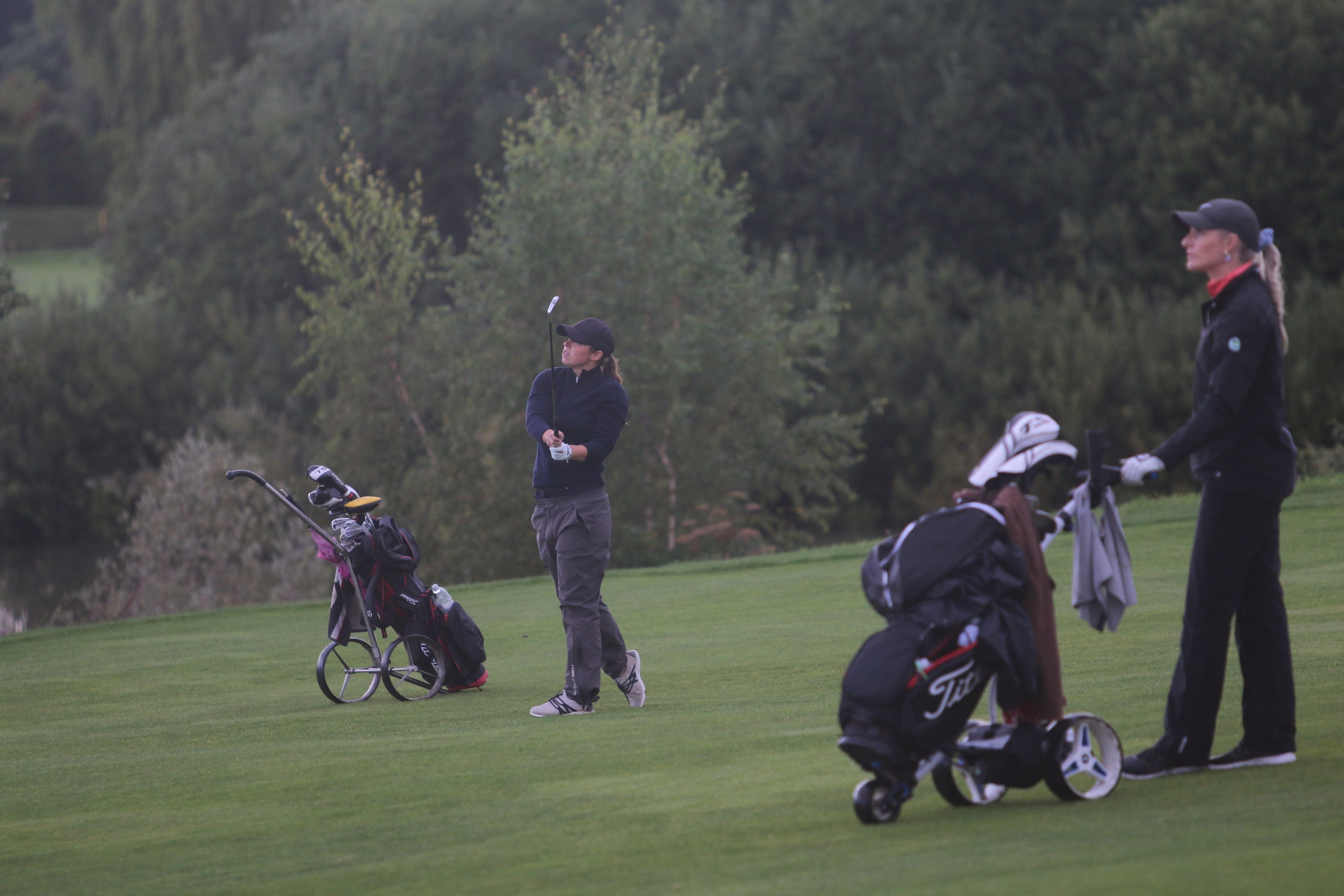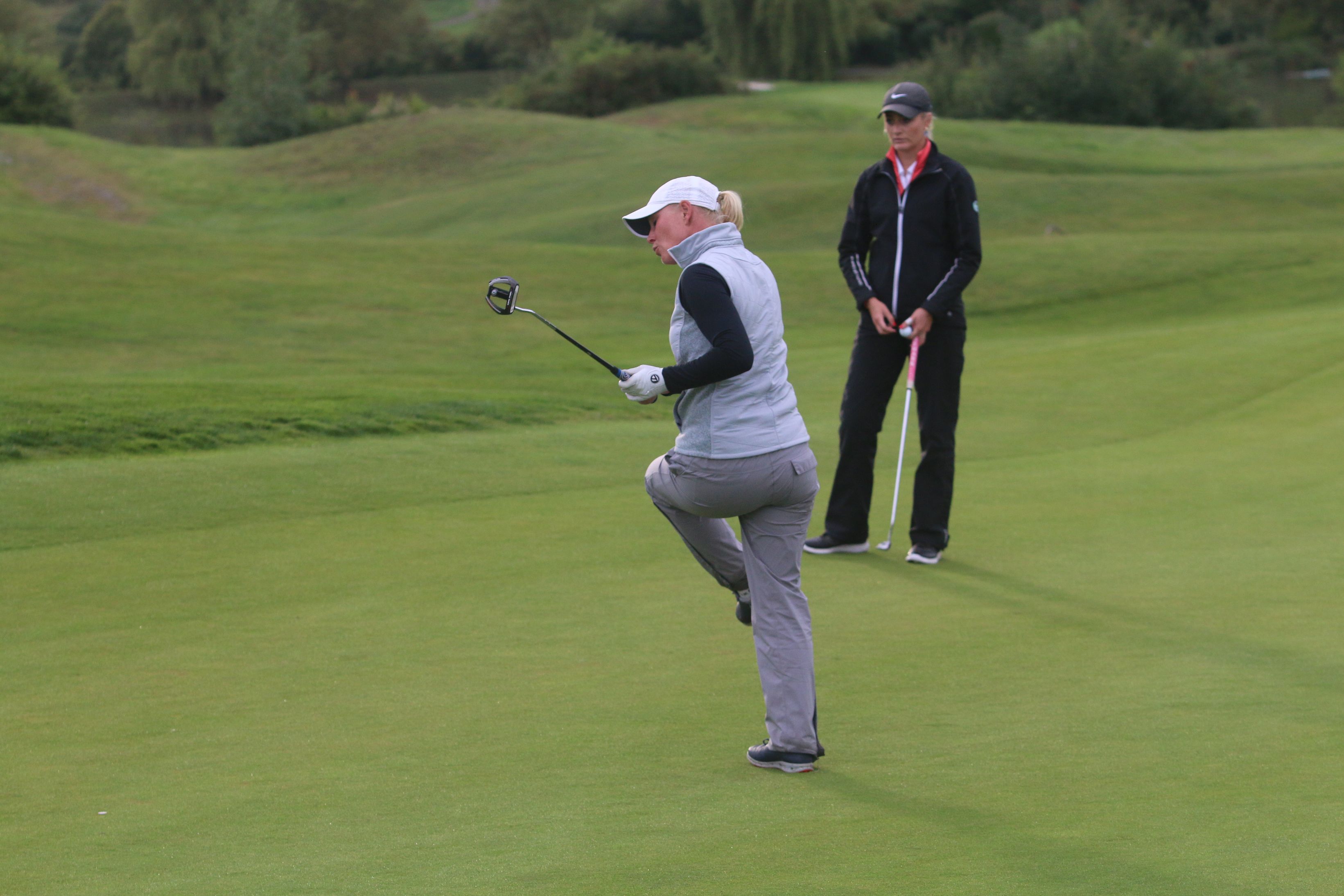 Ein Doppelsieg, an dem freilich ebenso großen Anteil Christine Germershaus hat, die sich erstmals den Pokal der Damenkonkurrenz sichern kann. Mit Titelverteidigerin Jacqueline Dittrich vom Golfclub Düren und Victoria Seuwen vom Golf & Country Club Am Hockenberg liefert sich die 25-Jährige Erdingerin einen spannenden Schlagabtausch über drei Tage, bei dem die Führung ständig wechselt und Germershaus nach 54 Löchern schließlich mit drei Schlägen Vorsprung vor Victoria Seuwen und unter dem Applaus der Kolleginnen und Kollegen sowie von Gastgeber Stefan Quirmbach, Präsident der PGA of Germany und Inhaber der Golfschule am Hardenberg, ihren ersten DM-Titel unter Dach und Fach bringt. Die Vorentscheidung fällt dabei an Loch 17 der Finalrunde, an dem Germershaus und Seuwen schlaggleich aufteen – Dittrich ist bereits aussichtslos zurück: Während Germershaus am 17. Grün zum vierten Mal an diesem Tag zum Birdie einlocht, muss Seuwen ein Doppelbogey an diesem Par 4 hinnehmen und liegt nun drei Schläge zurück. Das letzte Loch absolvieren beide schlaggleich per Bogey, womit Christine Germershaus erstmals die German PGA Ladies Championship gewinnt.