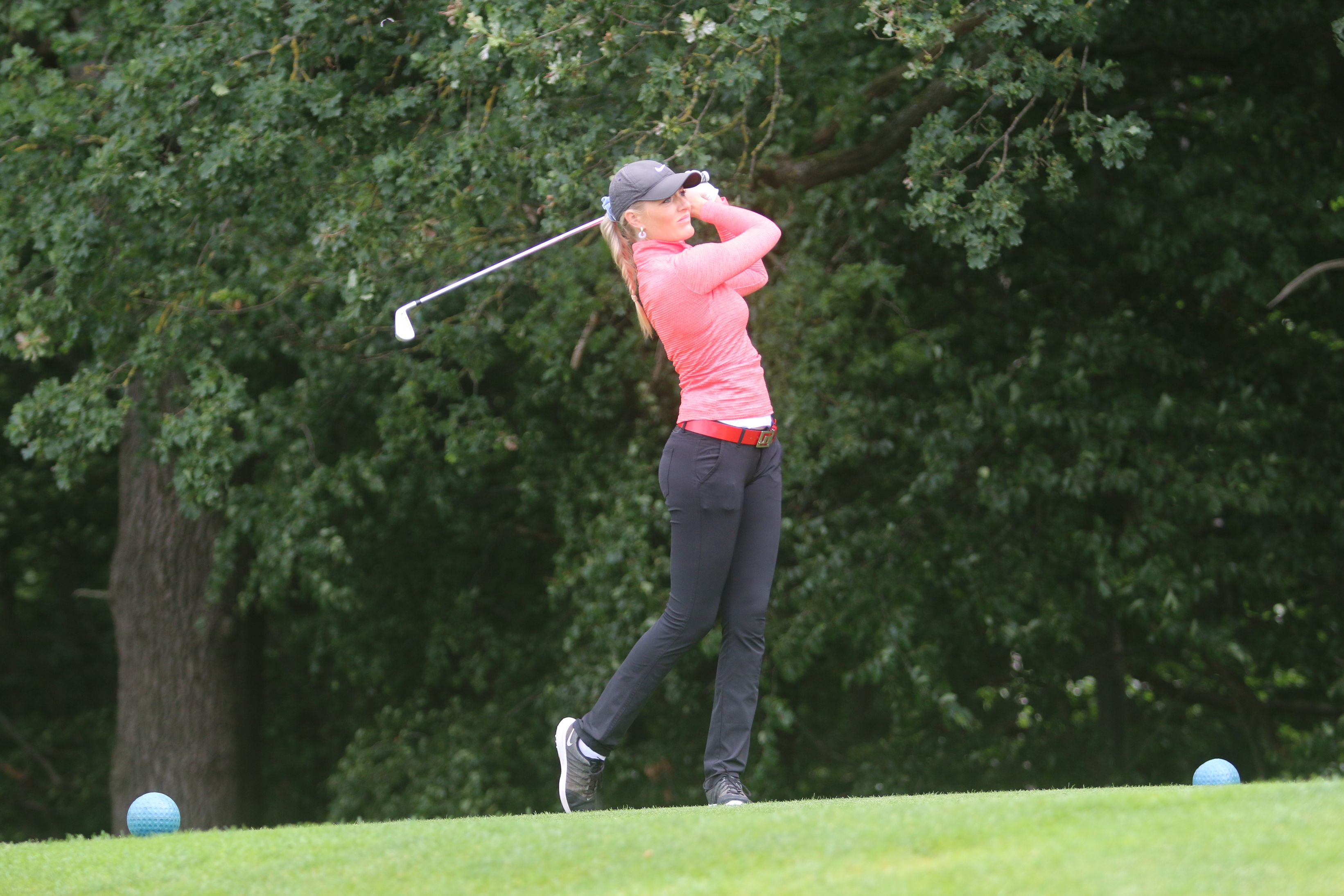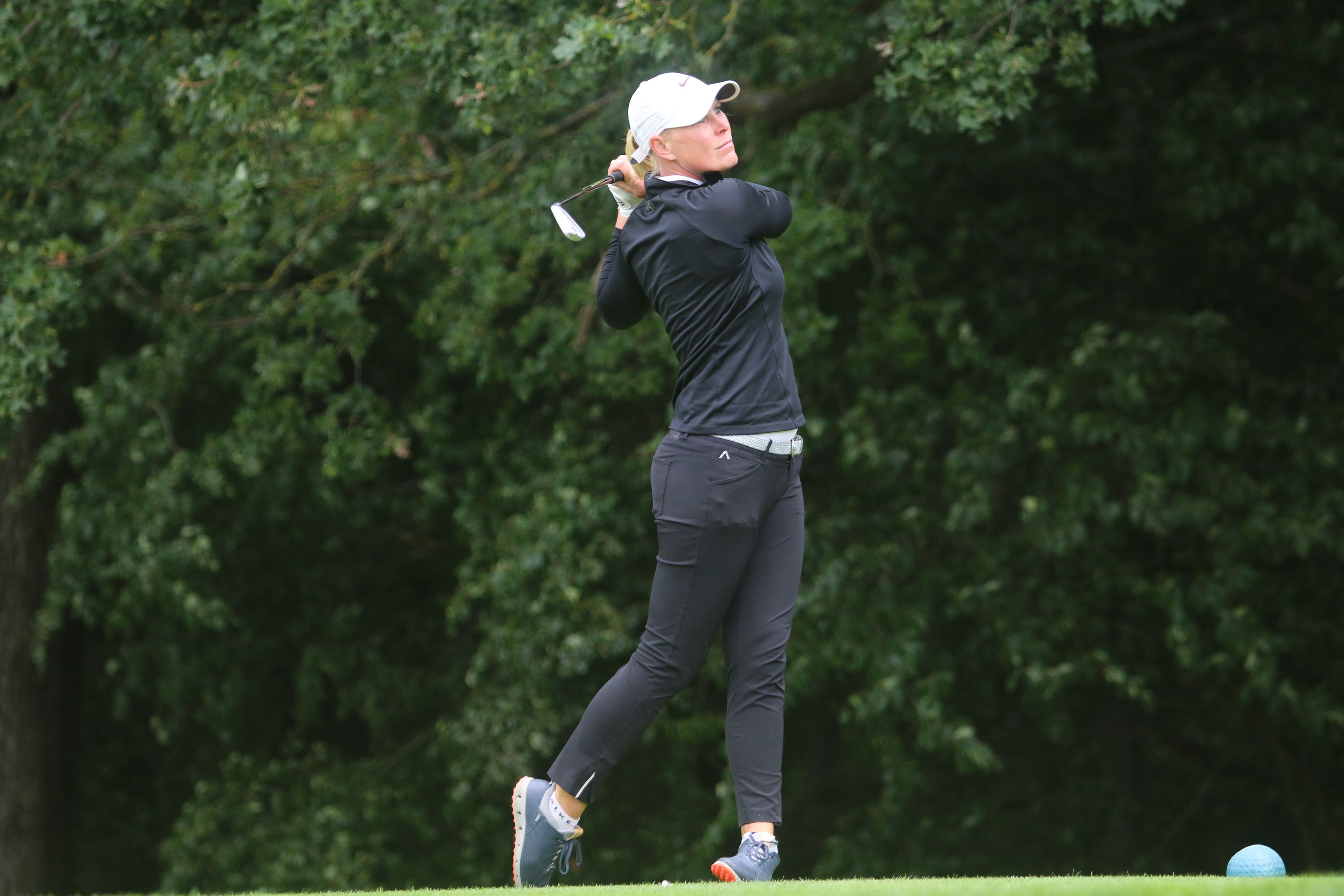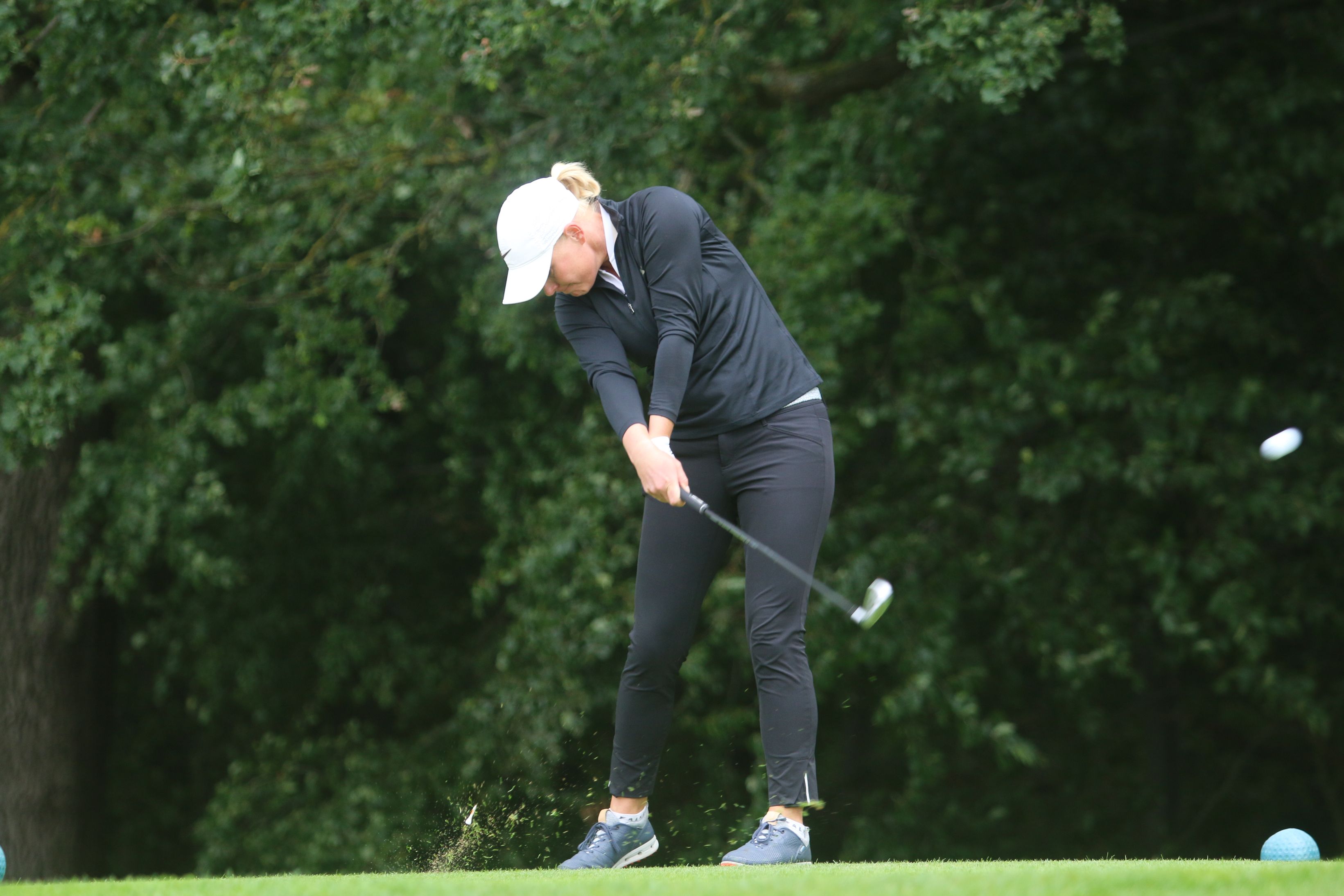 Ein Doppelsieg, an dem freilich ebenso großen Anteil Christine Germershaus hat, die sich erstmals den Pokal der Damenkonkurrenz sichern kann. Mit Titelverteidigerin Jacqueline Dittrich vom Golfclub Düren und Victoria Seuwen vom Golf & Country Club Am Hockenberg liefert sich die 25-Jährige Erdingerin einen spannenden Schlagabtausch über drei Tage, bei dem die Führung ständig wechselt und Germershaus nach 54 Löchern schließlich mit drei Schlägen Vorsprung vor Victoria Seuwen und unter dem Applaus der Kolleginnen und Kollegen sowie von Gastgeber Stefan Quirmbach, Präsident der PGA of Germany und Inhaber der Golfschule am Hardenberg, ihren ersten DM-Titel unter Dach und Fach bringt. Die Vorentscheidung fällt dabei an Loch 17 der Finalrunde, an dem Germershaus und Seuwen schlaggleich aufteen – Dittrich ist bereits aussichtslos zurück: Während Germershaus am 17. Grün zum vierten Mal an diesem Tag zum Birdie einlocht, muss Seuwen ein Doppelbogey an diesem Par 4 hinnehmen und liegt nun drei Schläge zurück. Das letzte Loch absolvieren beide schlaggleich per Bogey, womit Christine Germershaus erstmals die German PGA Ladies Championship gewinnt.