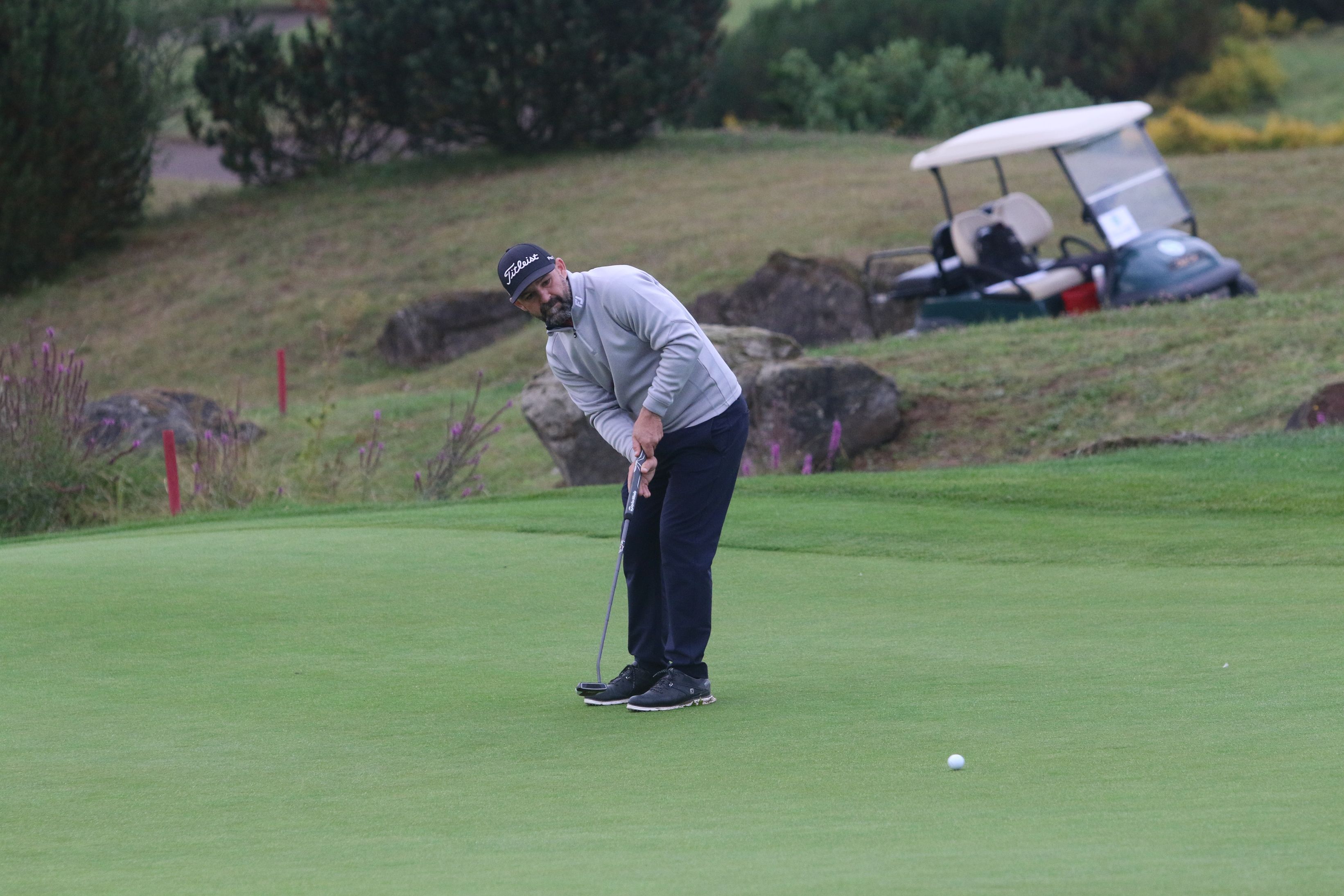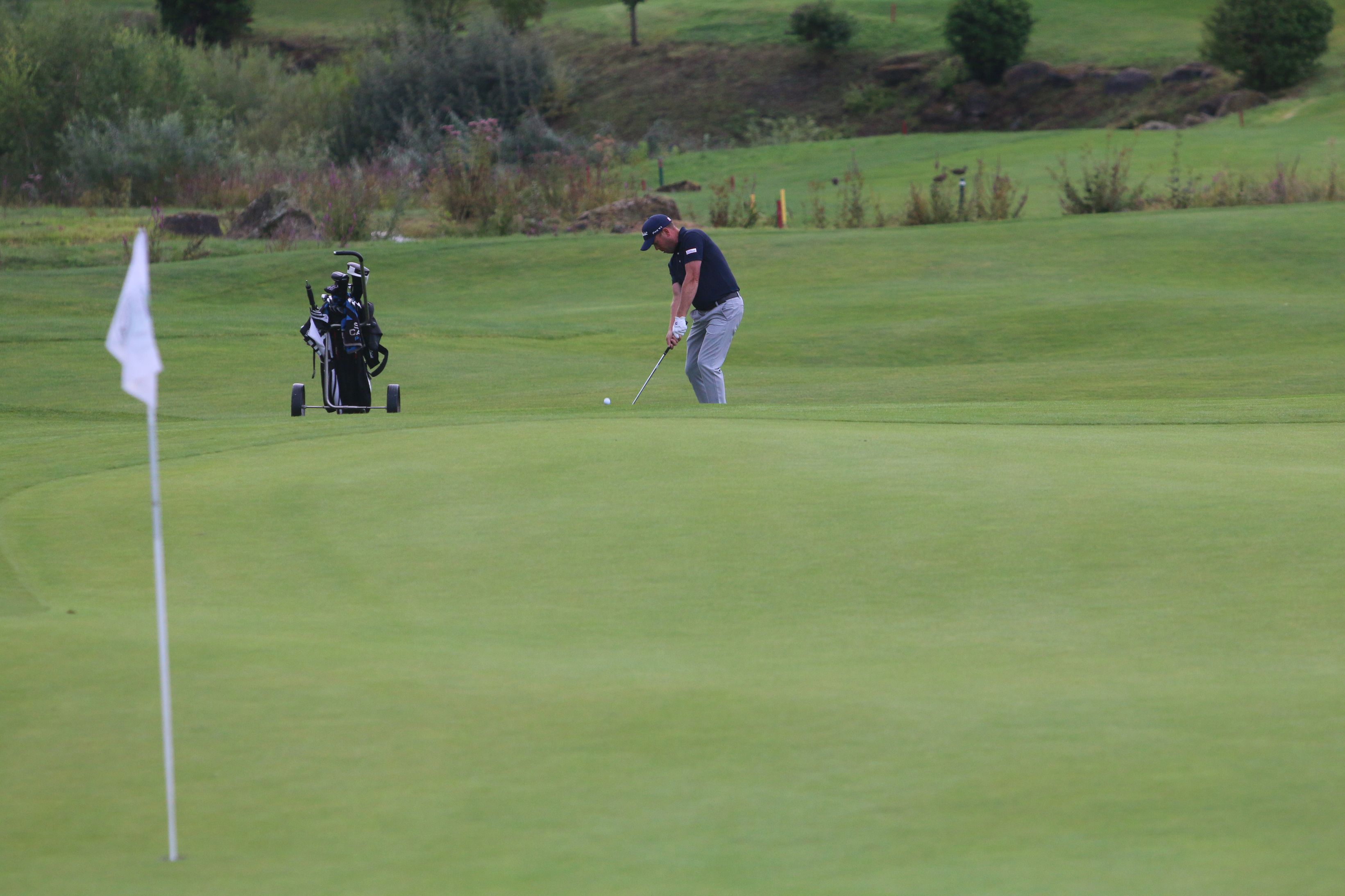 Dass die Entscheidung in der Konkurrenz der Herren am Hardenberg erst im letzten Abendlicht fiel, lag zum einen am Stechen zwischen Küpper und Jahn, vor allem aber an einer fast vierstündigen Unterbrechung am Nachmittag wegen heftiger Gewitter und Regenschauer. Allerdings kam vor allem Küpper mit der Zwangspause bestens zurecht, die ihn am 11. Grün ereilte. „Nach der Unterbrechung habe ich viele gute Schläge gemacht, bin geduldig geblieben und letztlich belohnt worden. An der 17 habe ich mir ein Bogey gefangen, dann aber gesehen, dass Florian nur zwei Schläge vorne ist. Ich habe an meine Chance und an ein Birdie an der 18 geglaubt, denn ich kenne den Platz sehr gut, und Hardenberg ist immer ein gutes Pflaster für mich. Ich spiele hier immer gut und habe hier 2011 auch schon mal ein Turnier der Pro Golf Tour gewonnen. Es wird nicht so tief geschossen, und man muss gute Golfschläge machen, um vorne dabei zu sein.“
