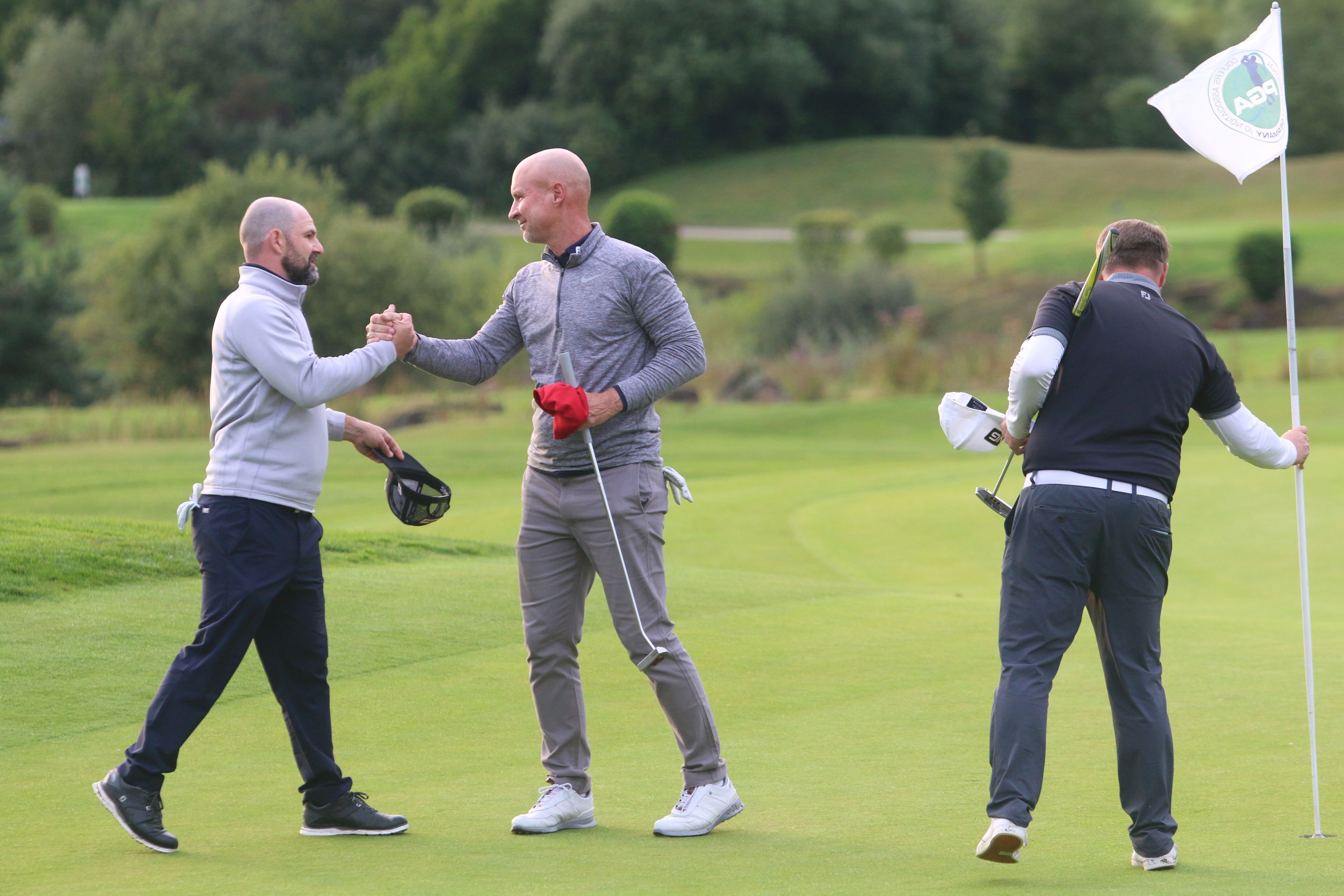 Auf dem Weg zurück zum Clubhaus entwickelt sich sodann ein spannendes Fernduell: Geall liefert fünf Birdies und bleibt fehlerfrei, locht an der 18 zur exzellenten 68er-Runde ein, dem besten Resultat des gesamten Senioren-Turniers. Stevenson gelingen auf den Back Nine bei nur einem Bogey allerdings auch vier Birdies, womit er die Deutsche Meisterschaft letztlich doch noch souverän mit zwei Schlägen Vorsprung ins Ziel bringt. Lohn der starken Vorstellung: Der mächtige Senioren-Pokal der Deutschen Golflehrermeisterschaft 2021 und ein Siegerscheck über 2500 Euro.