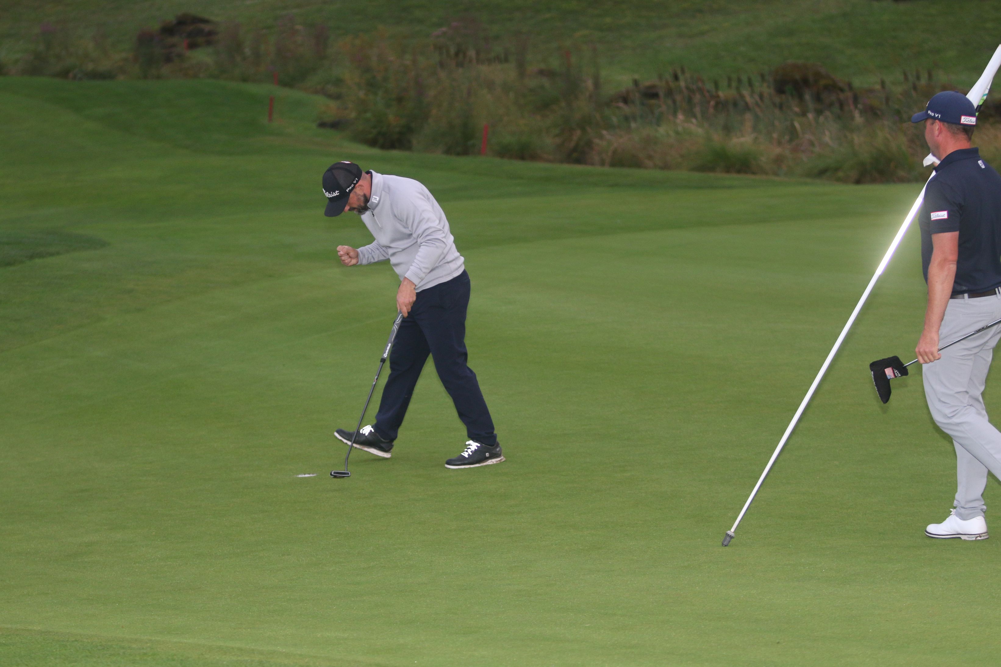 Dass es dann in der Finalrunde doch noch einmal ein bisschen spannend wird, liegt vor allem an David Geall: Während Nicholas Hubbard als erster Verfolger keinen guten Tag erwischt und Stevenson nicht unter Druck setzen kann, gelingt dies dem Hünen von Gut Uhlenhorst, der in der vorletzten Gruppe mit einem Birdie in seine Schlussrunde gestartet ist. Nach 36 Löchern hatte Geall noch sieben Schläge Rückstand auf Stevenson, doch dessen Vorsprung schmilzt durch vier Bogeys auf den ersten sechs Löchern schnell dahin. Vorentscheidend dann Bahn 9, als Geall an diesem kniffligen Par 3 sein einziges Doppelbogey im Turnier unterläuft; Stevenson kommt mit einem Bogey davon.