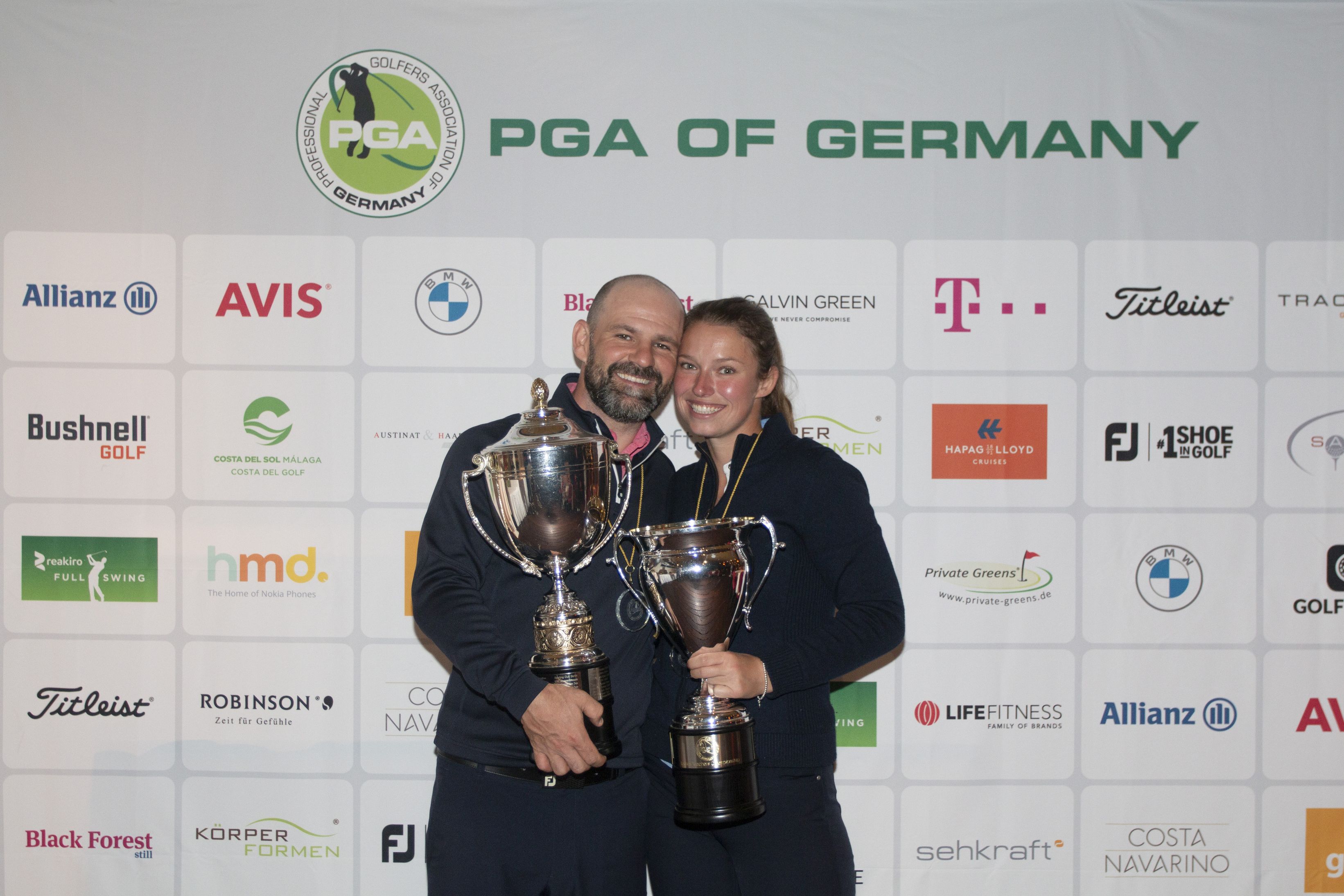 Dennis Küpper kann sein Glück kaum fassen, als Töchterchen Leonie als erste Gratulantin über das Grün auf ihn zuläuft, denn es ist ein ganz besonderer Erfolg an diesem frühen Abend auf dem Niedersachsen Course des Golf Club Hardenberg: Wenige Minuten zuvor hat seine Verlobte Chrissy Germershaus zum ersten Mal den DM-Titel der Damen gewonnen, nach zuletzt zwei Vizemeisterschaften in Folge. „Es ist wirklich sensationell, dass wir beide parallel gewinnen. Wir haben uns zuhause noch unterhalten, dass es das Coolste auf der Welt wäre – nicht viele Paare können das von sich behaupten. Ich freue mich sehr für Chrissy, denn sie war in den letzten zwei Jahren immer nahe dran, heute hat sie es heimgebracht.“ Das letzte Mal, dass die DM zur Familiensache wurde, war 2008, als Nicole und Thomas Gögele in Bad Saarow siegten.