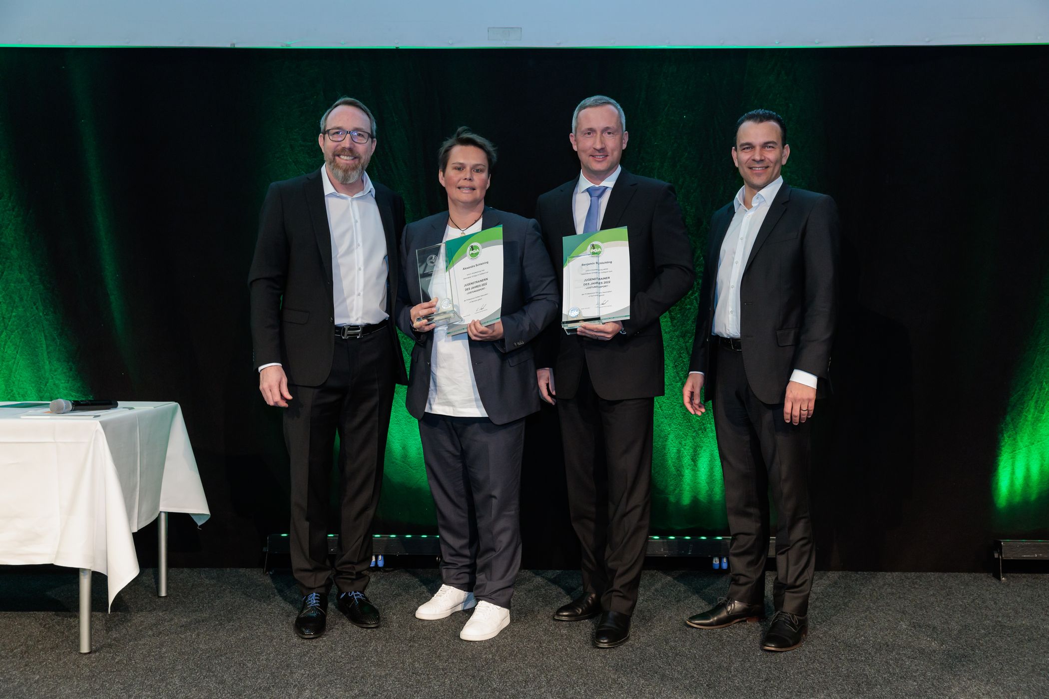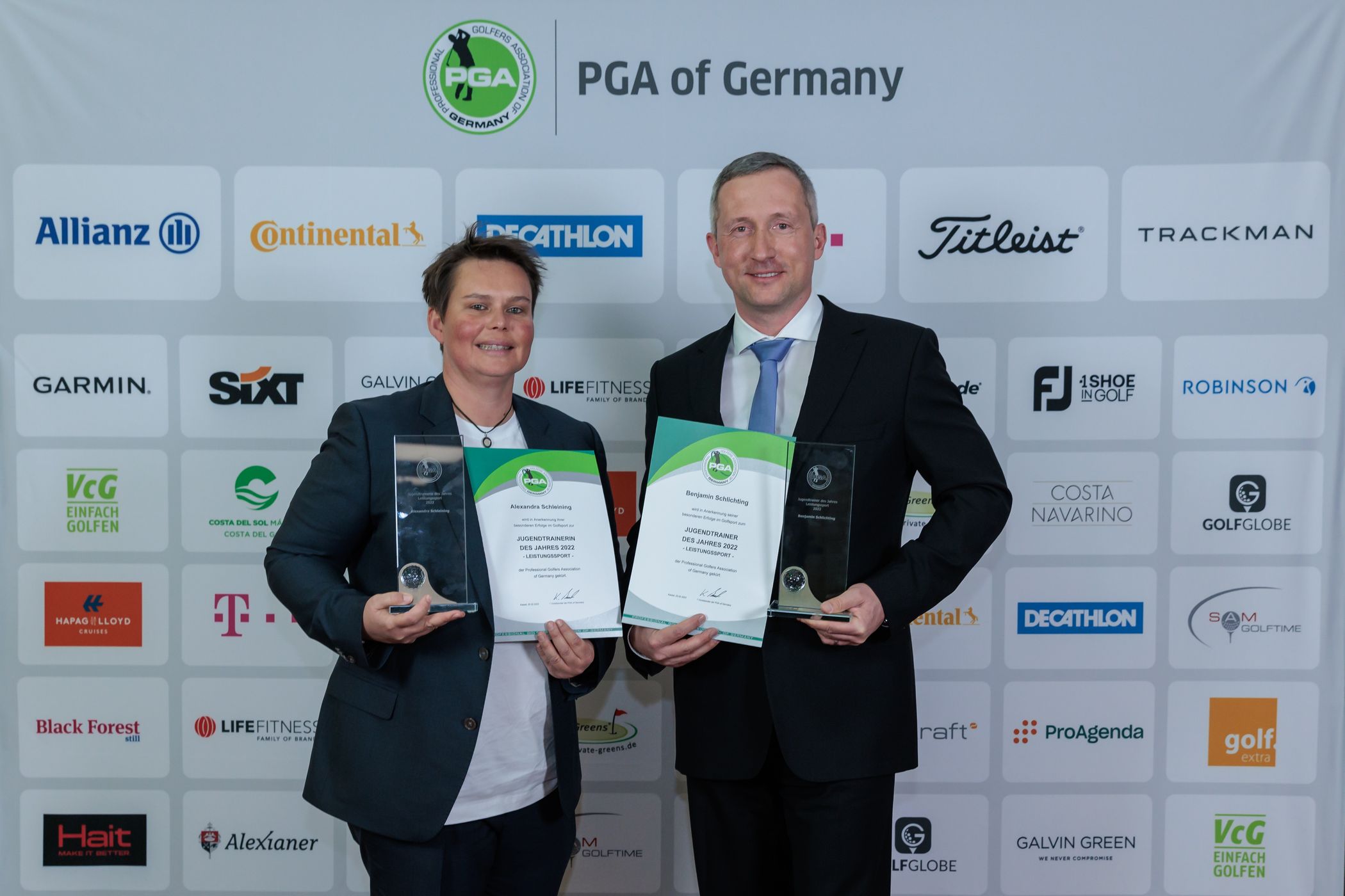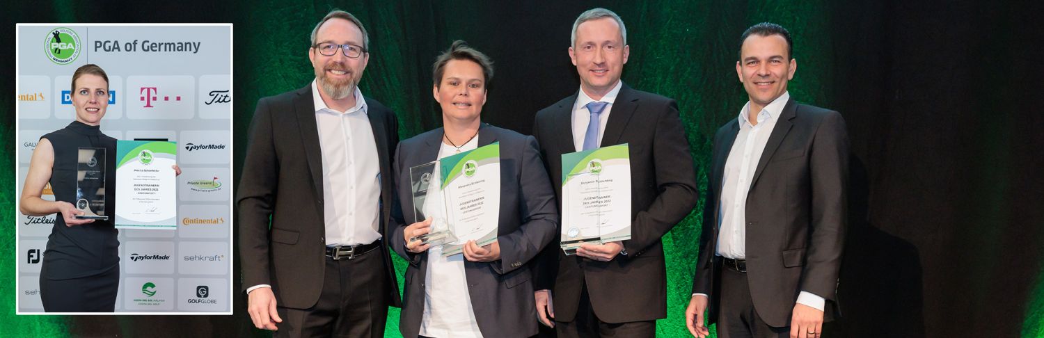 Sie statten den Nachwuchs mit dem Einmaleins des Golfspiels und mit den technischen Grundlagen aus, wecken und verstärken die Begeisterung für das neue Hobby, erkennen, fördern und fordern Talente und leisten auf vielen Ebenen unschätzbar wertvolle Aufbauarbeit für Golfschulen, Golfclubs und für den Golfsport ganz allgemein: Die Jugendtrainerinnen und Jugendtrainer der PGA of Germany. Für besonders herausragende Leistungen in der Saison 2022 durften im Rahmen der PGA Gala in Kassel Jessica Schönfelder, Alexandra Schleining und Benjamin Schlichting die PGA Jugendtrainer-Awards in den Kategorien „Breitensport“ und „Leistungssport“ entgegennehmen.