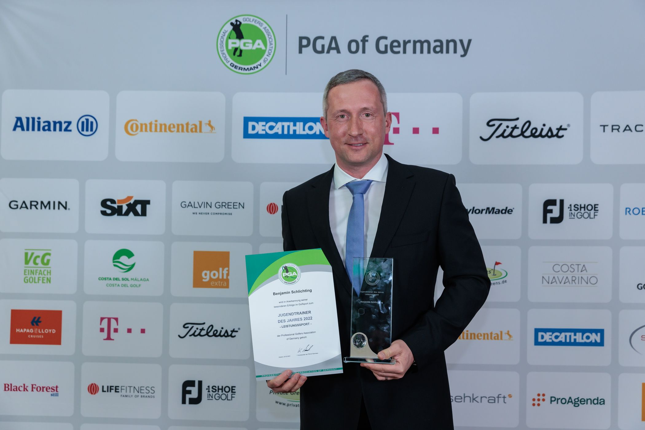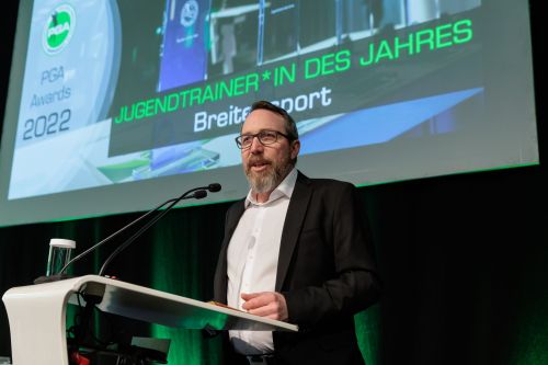 Seinen Jugendtrainer-Award widmete Benjamin Schlichting seinen Spielern, ebenso aber auch den Kolleginnen und Kollegen im GC St. Leon-Rot, „die gleichermaßen zu den Erfolgen beigetragen haben, und ohne die ich heute hier nicht stehen würde“.