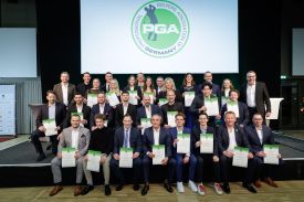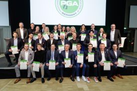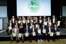 Gemeinsam viel erreichen: Das gelang Ian Holloway in der Saison 2024 mit seinen Spielerinnen und Spielern in überragender Weise. Die Schweizerin Chiara Tamburlini gewinnt unter seiner Anleitung als „Rookie of the Year” drei Turniere der Ladies European Tour und holt sich auch den Gesamtsieg der LET Order of Merit 2024. Mit den Damen des GC Hubbelrath erreicht er das erste Mal seit acht Jahren wieder das FINAL FOUR der Deutschen Golf Liga, mit den AK-14-Mädchen des Clubs holt er bei der DM Silber. Nicolai von Dellingshausen coacht er zurück auf die DP World Tour, wo er seit Jahren Max Kieffer erfolgreich betreut. „2024 war wirklich ein absolut phantastisches Jahr“, so Ian Holloway, „es gab eine ganze Reihe toller Erfolge.“ Eine Leistung als Trainer und Coach, die die Berufskollegen der PGA of Germany mit der Wahl zum PGA Teacher of the Year honorieren, und zu der sogar David Leadbetter per Videobotschaft herzlich gratulierte. „Diese Auszeichnung bedeutet mir sehr viel“, so der Preisträger, der mit seinen Schützlingen „leidenschaftlich gerne direkt auf dem Platz“ arbeitet, um gemeinsam herauszufinden, „wie wir das Spiel und die Scores verbessern können.“ Sein Tipp an die jungen Berufskollegen, die wenig später auf derselben Bühne ihre Zeugnisse als Fully Qualified PGA Professionals entgegennahmen: „Lernt immer mehr, als ihr denkt, lernen zu müssen. Ihr steht jetzt am Anfang Eurer Karriere, aber seid immer neugierig und offen, denn der Golfsport hat die Macht, Euch sehr viele Türen zu öffnen.“