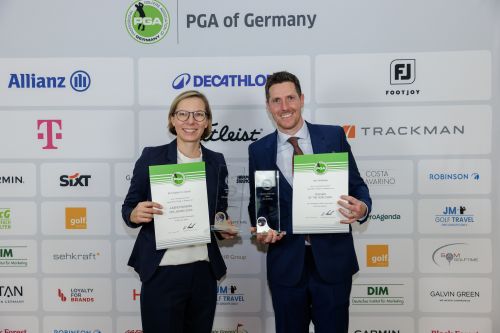 Eine Einschätzung, der sich – jeweils zugeschaltet per Videobotschaft – auch die beiden Player of the Year 2024 anschlossen, Esther Henseleit und Stephan Jäger. Esther Henseleit sorgte im letzten Jahr mit dem Gewinn der Silbermedaille beim olympischen Golfturnier in Paris für Furore und brachte Spitzengolf auch in die Wohnzimmer von Sportfans, die bisher kaum nicht mit Golf in Berührung gekommen waren. Mit jeweils Platz 2 bei der Aramco Ladies International auf der Ladies European Tour und beim LPGA-Turnier ISPS Handa Women's Scottish Open untermauerte sie darüber hinaus ihre hervorragende Form. Stephan Jäger etablierte sich mit seinem Sieg bei der Texas Children's Houston Open, Platz 2 bei der Black Desert Championship und jeweils dritten Plätzen bei der Mexico Open at Vidanta und der Farmers Insurance Open endgültig auf der PGA Tour, und auch der Eichenrieder war bei Olympia in Paris für das Team Germany am Start. Die Player-Awards erhalten Ehrenplätze in beider Trophäen-Vitrinen, und das Ziel ist klar: Hoffentlich noch möglichst oft Gesellschaft in kommenden Jahren.