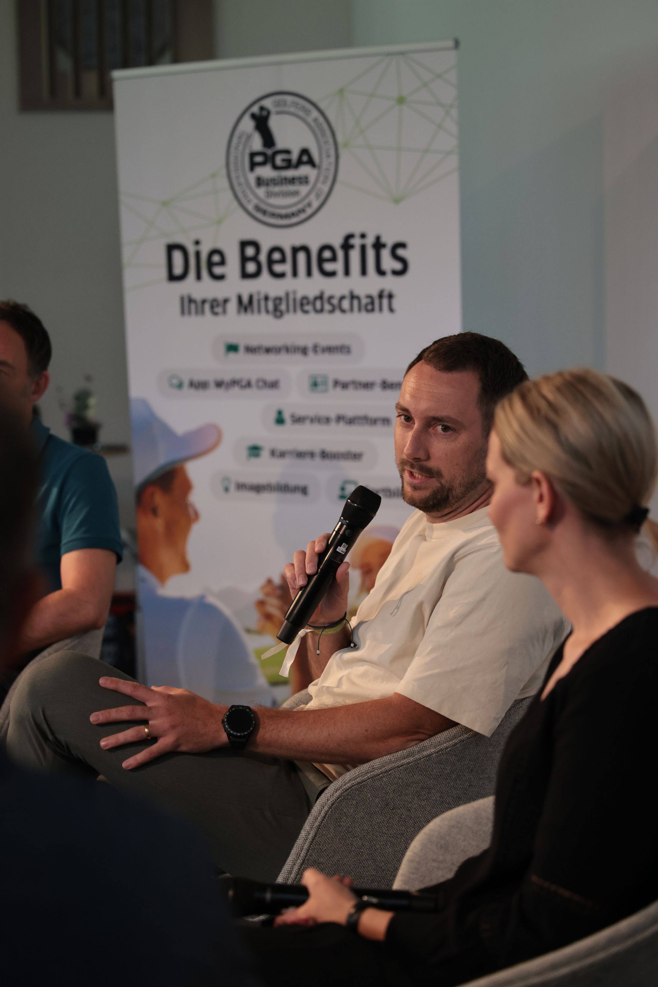 Eichenried – Zunächst tauschten sich auf dem Podium Jessica Weber (Allianz), Marius Nistler (CAA) und Christian Romberg (Kögl & Partner) zum Thema "Personal Branding - wie werden Sportler eine Marke?" aus. Anschließend demonstrierte der Nordire Tom McKibbin, wie man sehr lange und dennoch gerade Bälle schlägt - in Runde 1 des Turniers gelang ihm das bei einer 68er-Runde vorzüglich.