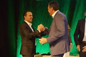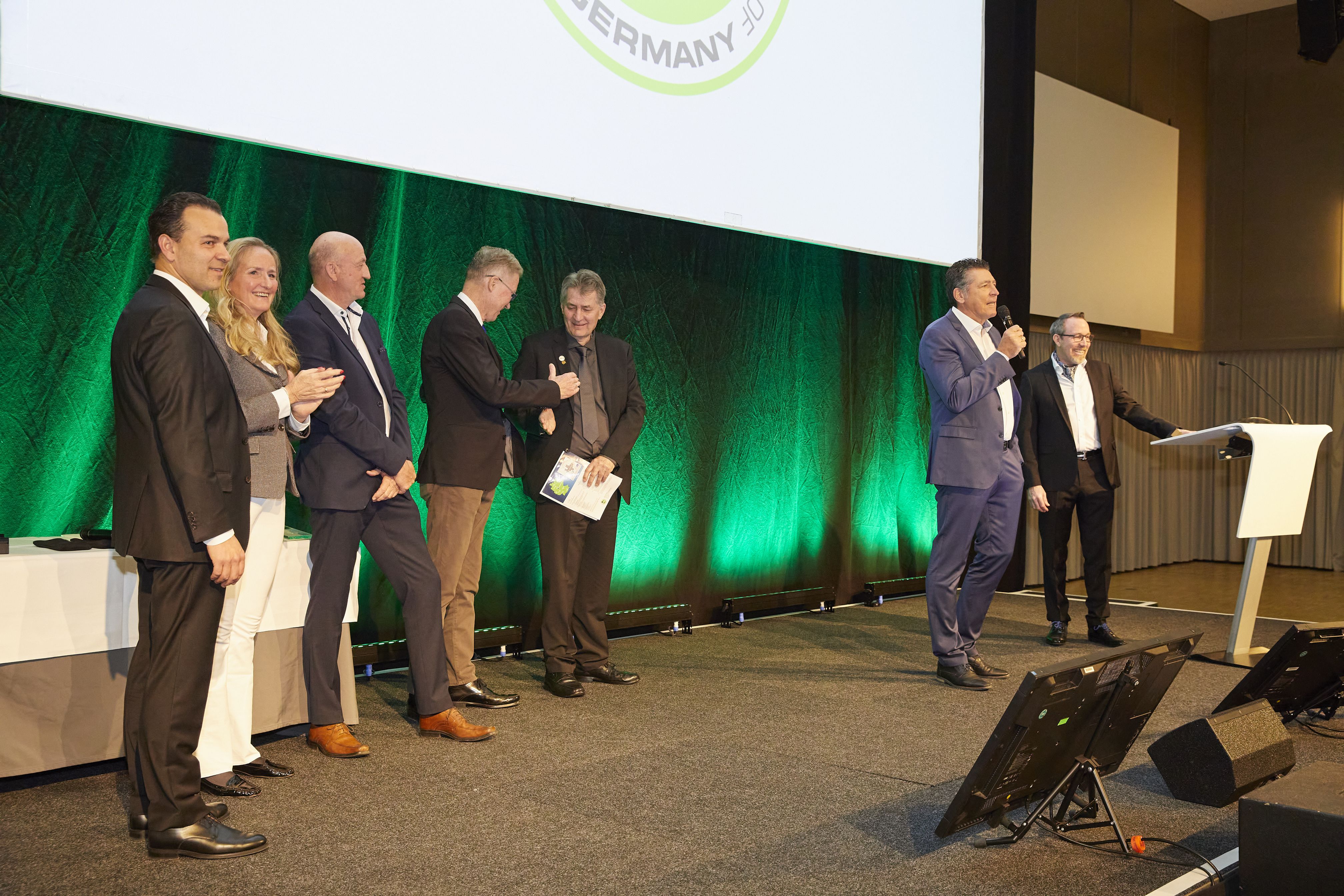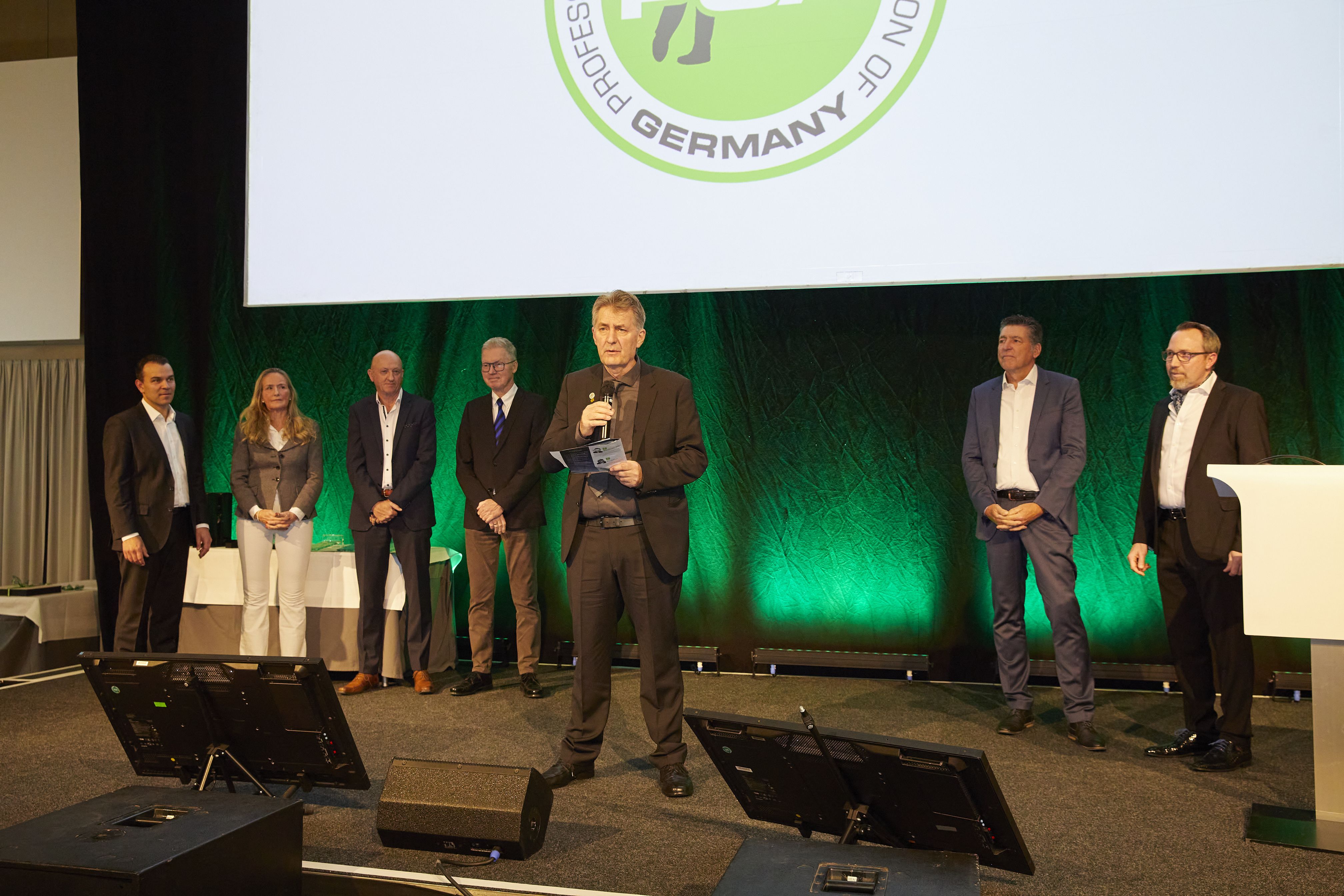 Kassel – Treue zur PGA of Germany wird seit vielen Jahren belohnt – wer dem Verband 25 Jahre angehört, erhält die silberne, wer 40 Jahre dabei ist, sogar die goldene Ehrennadel. Auf der Bühne des Kongress Palais Kassel nahmen in diesem Jahr zwei Mitglieder die Silber-Auszeichnung entgegen, fünf ließen sich von PGA Präsident Kariem Baraka das goldene PGA Emblem anstecken, darunter auch Stefan Quirmbach, Ehrenpräsident der PGA of Germany.